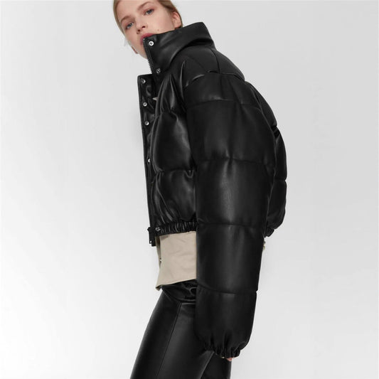 İNDİRİM 26%Solid Faux Leather Fleece Mont