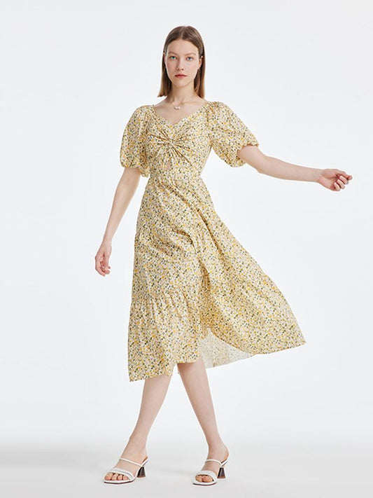 İNDİRİM 46%Çiçek Desenli Balon Kol Elbise