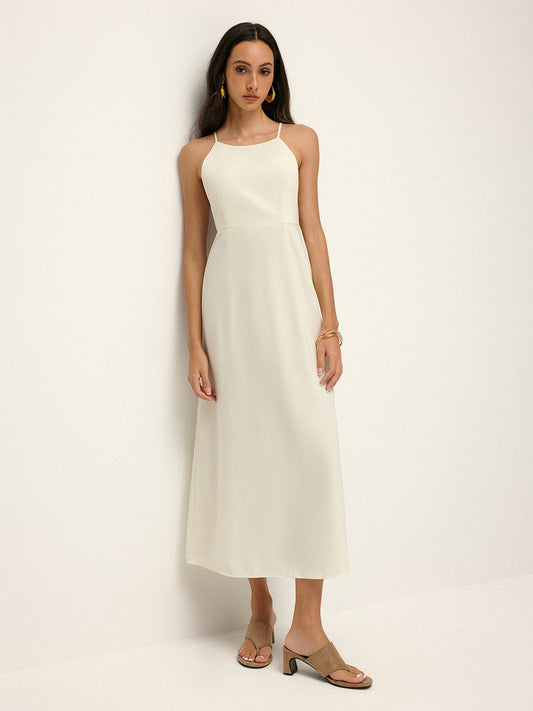 İNDİRİM 51%Minimalist Kravat Açık Sırt Askılı Elbise