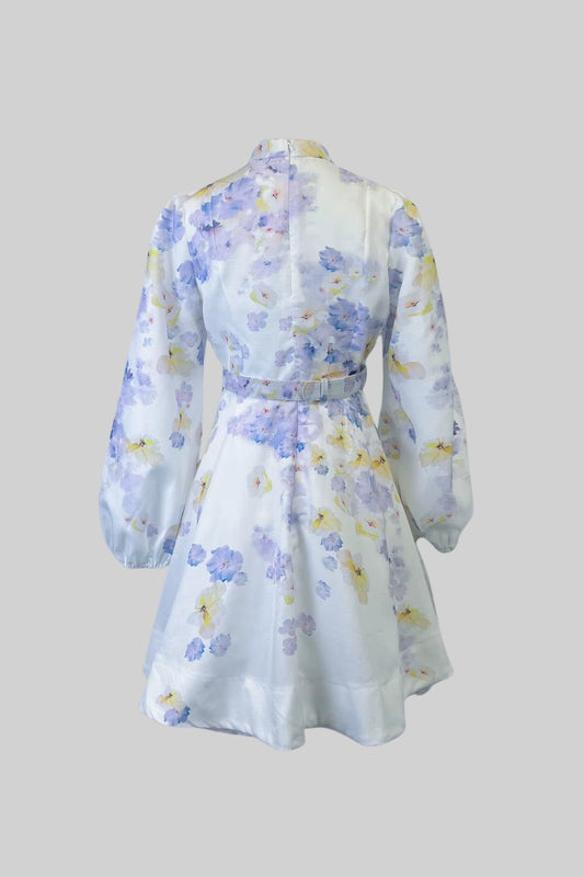 İNDİRİM 34%Mor ve Sarı Çiçek Motifli Uzun Kollu Elbise