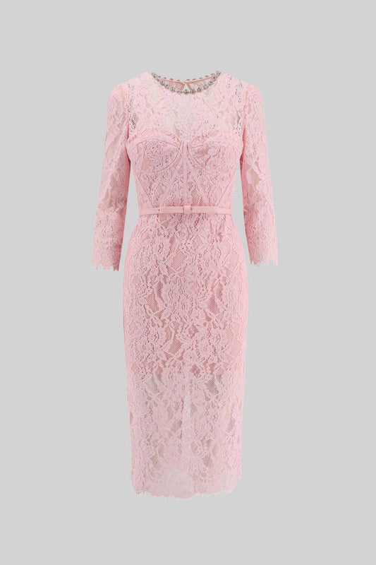 Eşleşen Bel Kemerli Zarif Uzun Kollu Dantel Elbise