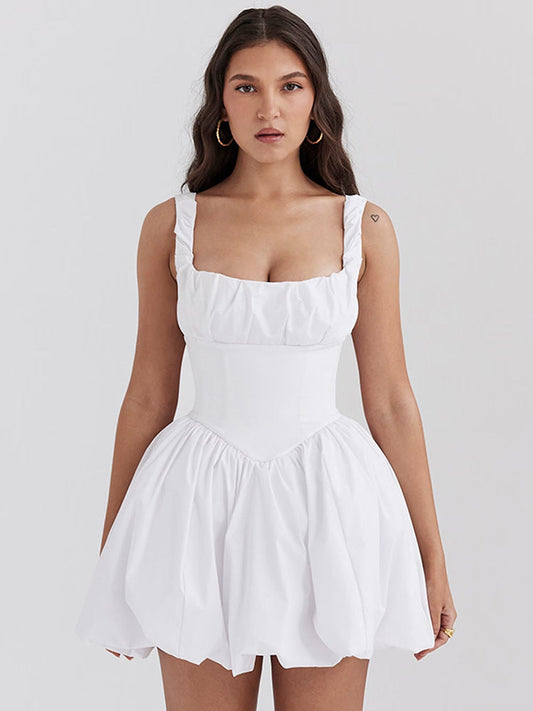 Gövdesi Fitilli ve Kontrast Düğmeli Dokulu Mini Elbise