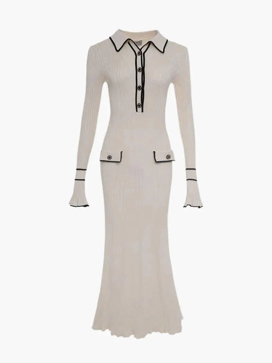 ROF Blanche Saten İncili Boyundan Bağlamalı Uzun Elbise - Beyaz