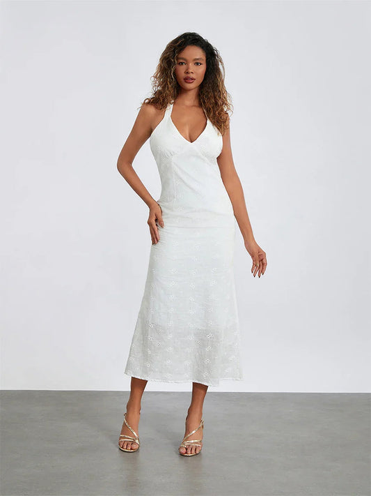 İNDİRİM 66%Sundrenched Pamuk Kuşgözü İşlemeli Uzun Elbise