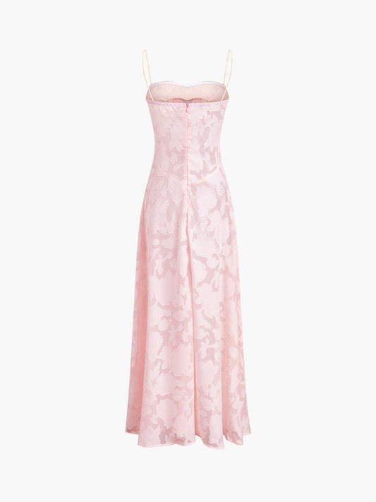İNDİRİM 49%Blossom Symphony Çiçek Detaylı Pembe Maxi Elbise