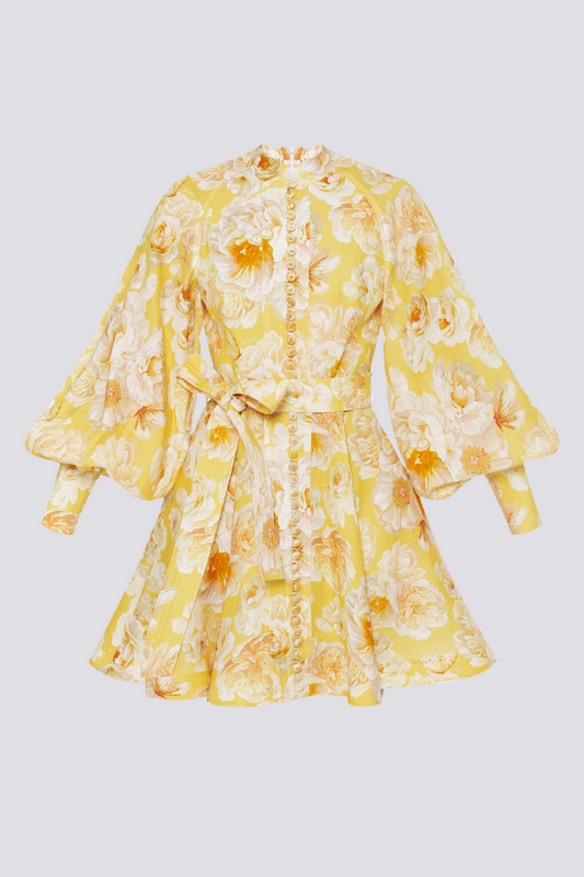 İNDİRİM 38%Cassiopeia Balon Kol Çiçekli Mini Elbise