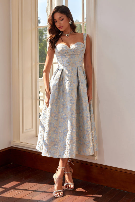 İNDİRİM 10%Sarah Mavi Jakarlı Midi Elbise