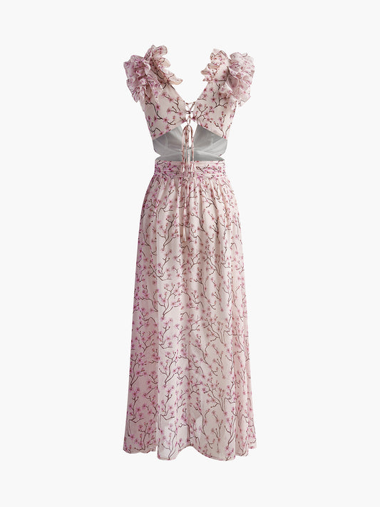 İNDİRİM 17%Sırtı Açık Fırfırlı Şifon Midi Elbise