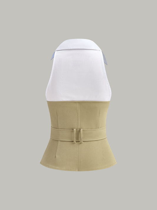 Metal Tokalı Kemerli Bluzsuz Peplum Üst