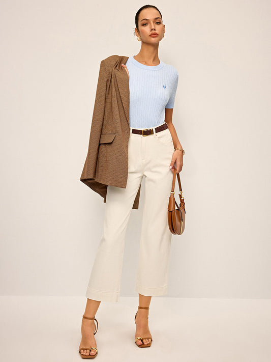 İNDİRİM 57%Kalp İşlemeli Yüksek Yaka Kablolu Örgü T-shirt
