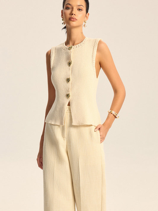 İNDİRİM 56%Metal Düğme Açık Örgü Yelek