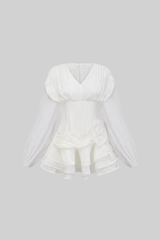 Korse Stili Gövdeli, Fırfır Etekli ve Kabarık Kollu Elbise