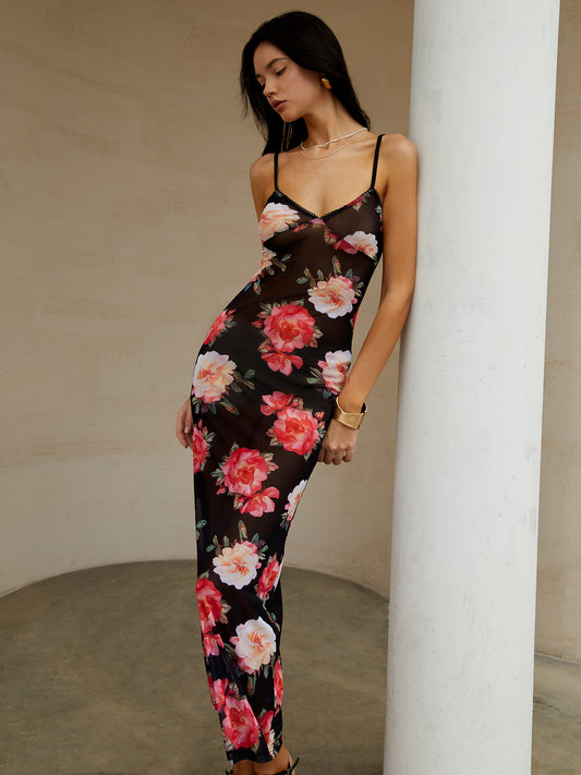 Şık Yarı Şeffaf Yüksek Bel Uzun Elbise, Çekici Dar Kesim