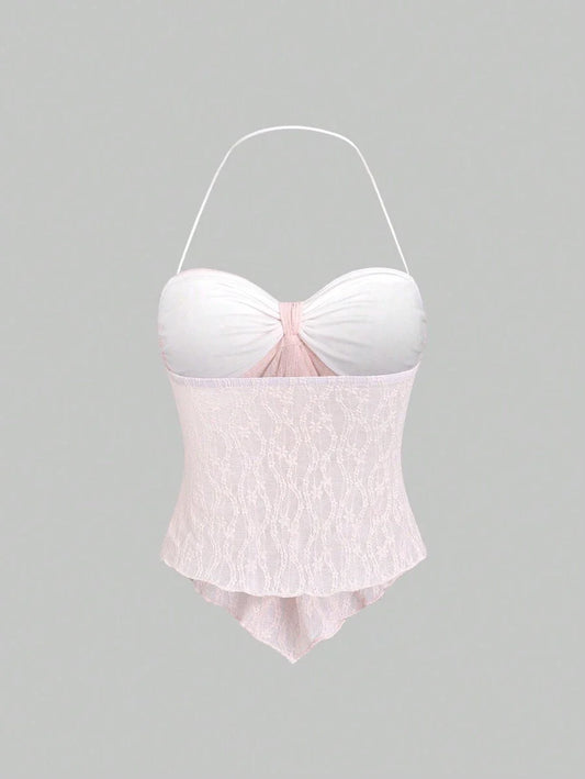Kontrast Dantel Sırtsız Askılı Üst