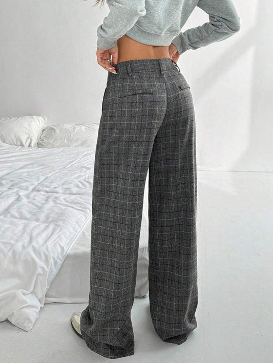 Ekstra Uzun Ekose Gri Bol Pantolon
