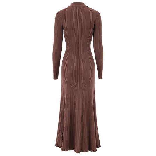 İNDİRİM 9%Yaka Metal Detaylı Örgü Uzun Elbise