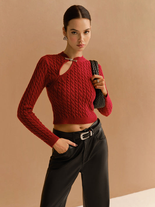 İNDİRİM 38%Şık Asimetrik Yaka Kaşmir Slim Kazak