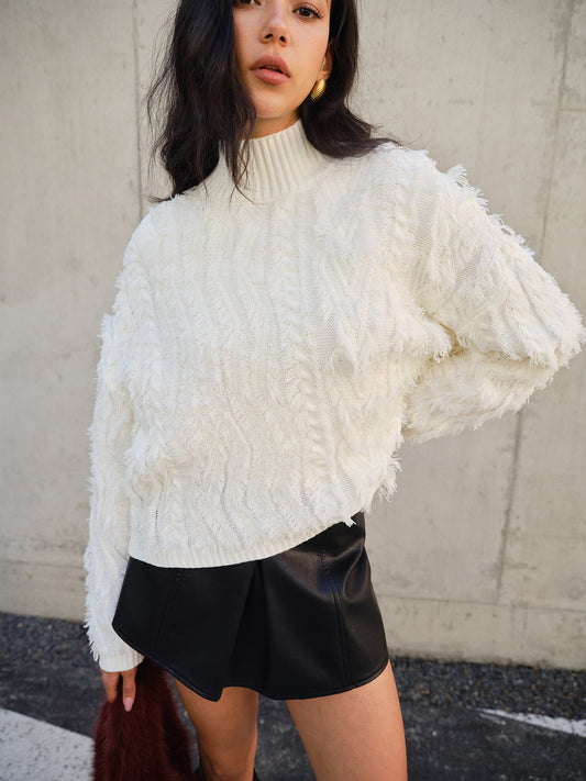 Şık Ham Kenarlı Yüksek Bel Kazak ile Zahmetsiz Stil