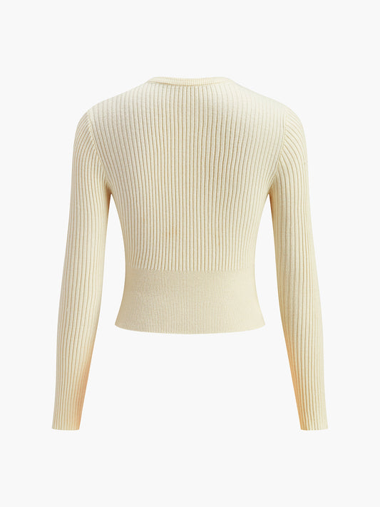 Şık Kesik Detaylı Boncuklu Dar Fit Ribanalı Kazak