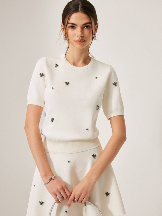 Şık Kısa Kollu Kazak ile Stil Sahibi Metal Aksesuarlar