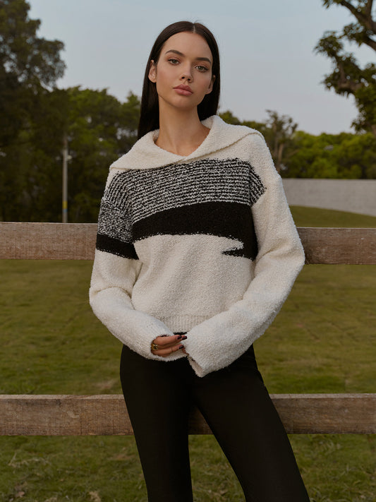 İNDİRİM 39%Şık Renk Bloklu Kısa Kazak Yelken Yaka