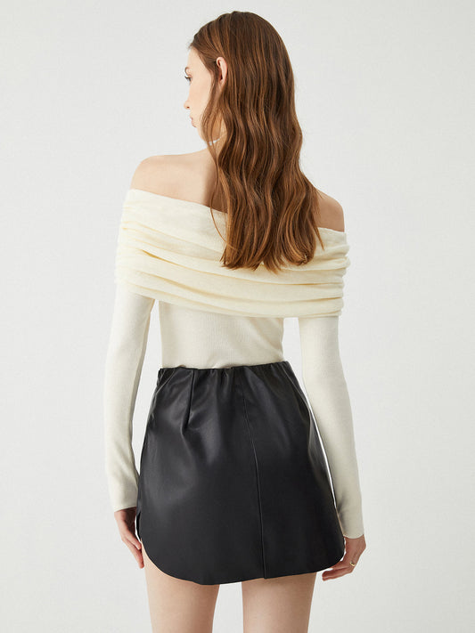Soğuk Omuz Asimetrik İnce Örgü Üst
