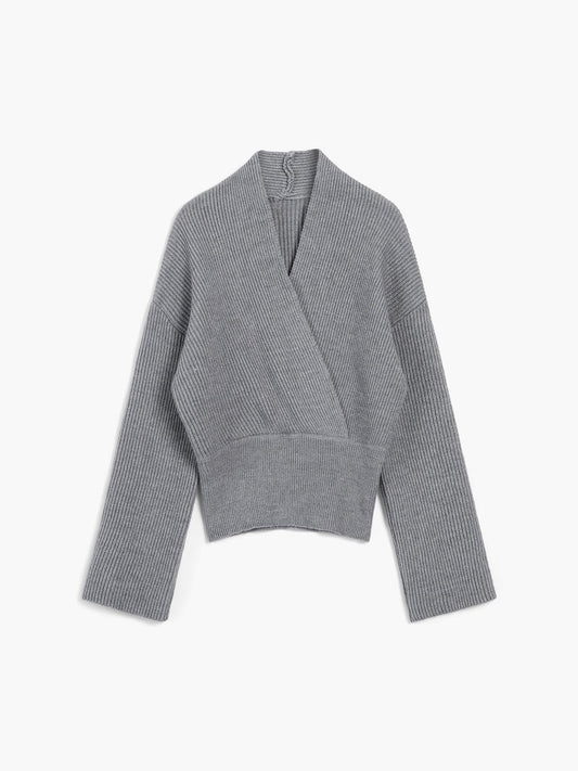İNDİRİM 49%Gri Kuşak Detaylı Minimalist Triko Kazak
