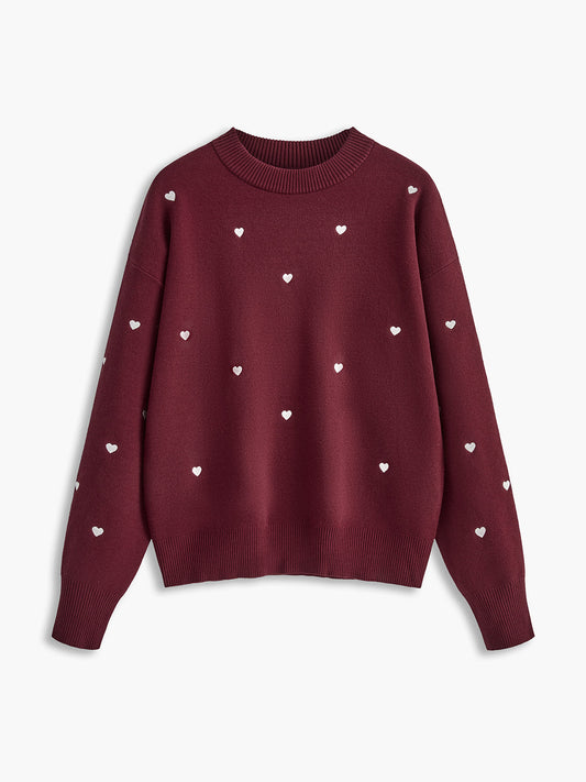 İNDİRİM 47%İşlemeli Kalp Büyük Boy Örgü Kazak