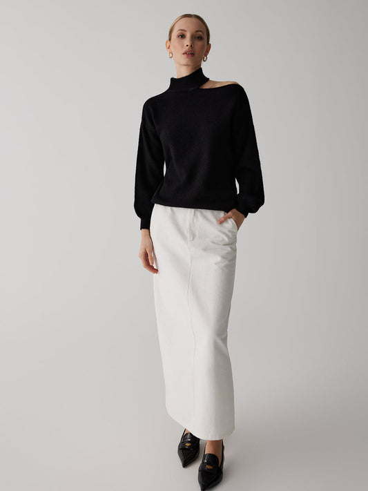 Asimetrik Yırtmaçlı Skinny Kazak
