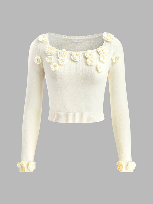 İNDİRİM 38%Romantik 3D Çiçekli Jarse Kazak