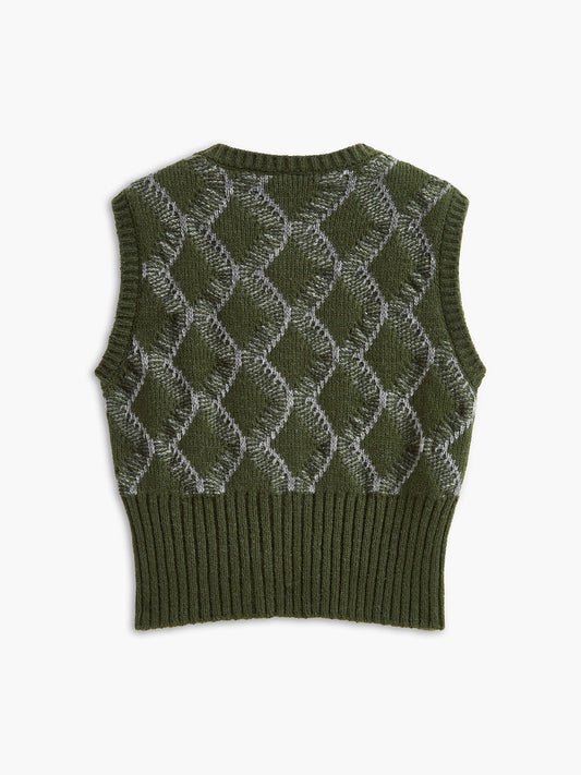İNDİRİM 61%Retro Metal Düğmeli Kazak Yeleği