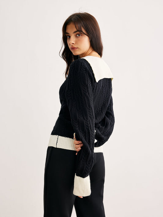 İNDİRİM 38%Ribana Detaylı Kontrast Manşetli Kazak