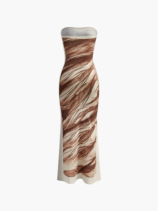 İNDİRİM 46%İnce Baskı Streç Straplez Elbise