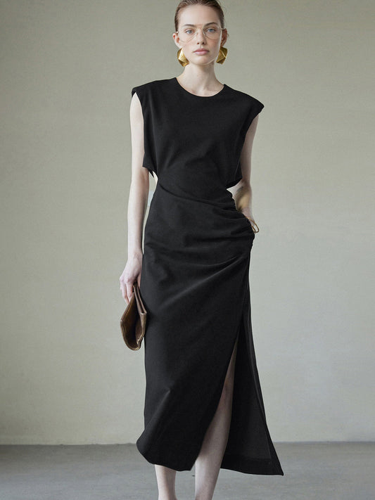 İNDİRİM 53%Düzensiz Dalgalı Kenar Örme Kolsuz Uzun Elbise