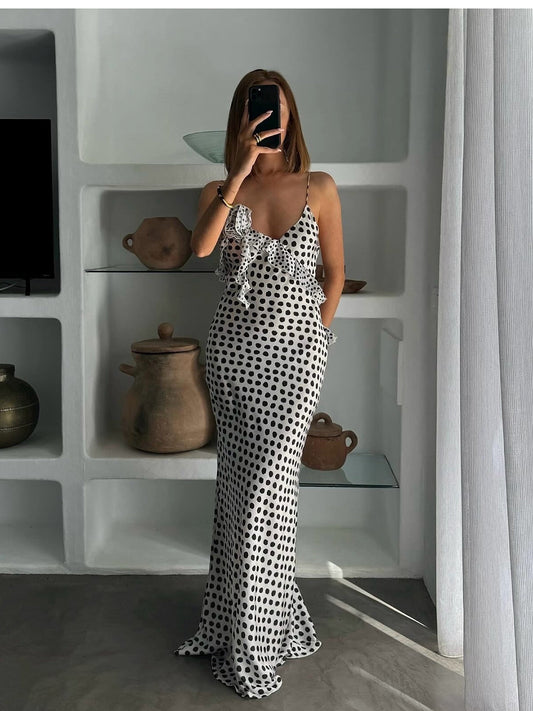İNDİRİM 53%Dream Life Baskı Sırt Düğümlü Uzun Elbise