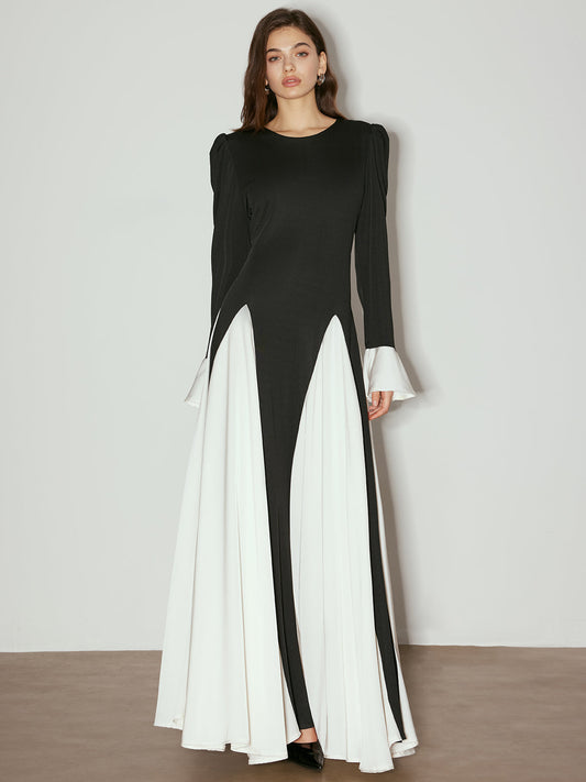 İNDİRİM 43%Renk Bloklu Volanlı Uzun Elbise