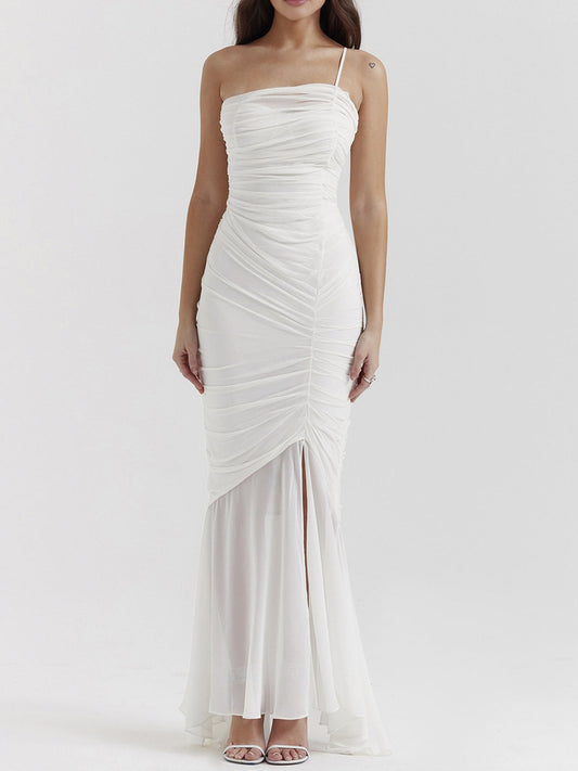 İNDİRİM 38%Tek Omuz Pileli Yırtmaçlı Uzun Elbise
