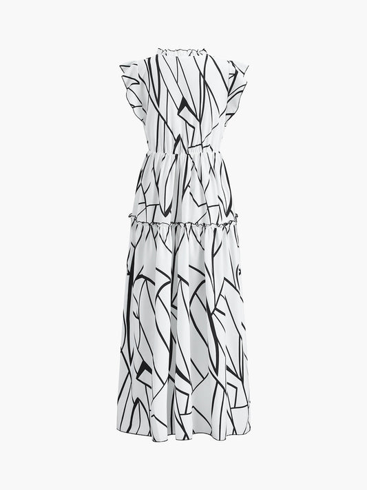 İNDİRİM 53%Soyut Çizgiler Baskılı Kolsuz Maxi Elbise