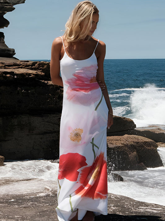 Summer Crush Çiçek Desenli Sırtı Açık Cami Uzun Elbise