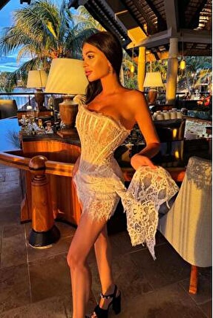 Dantel Uzun Kollu Vücuda Yapışkan Geri Açık Maksi Elbise