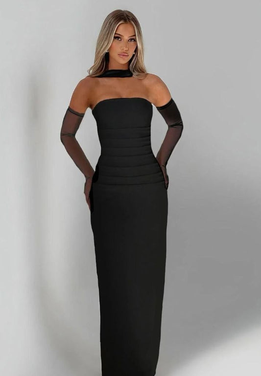İNDİRİM 53%Eldivenli Straplez Şık Elbise