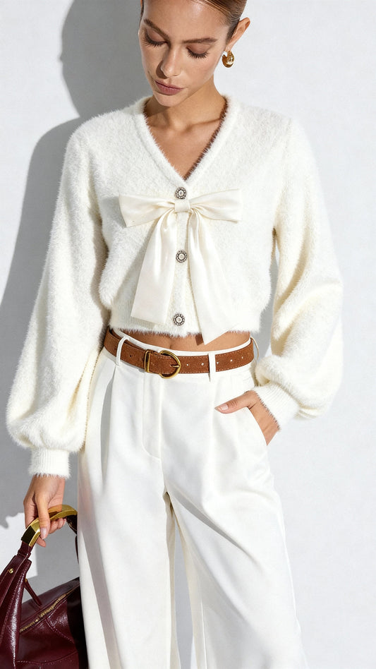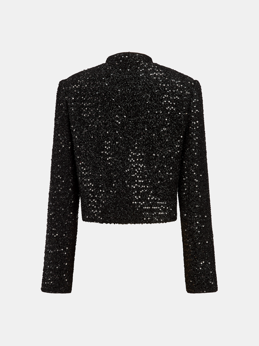 İNDİRİM 25%Yay Detaylı Simli Tweed Kısa Ceket