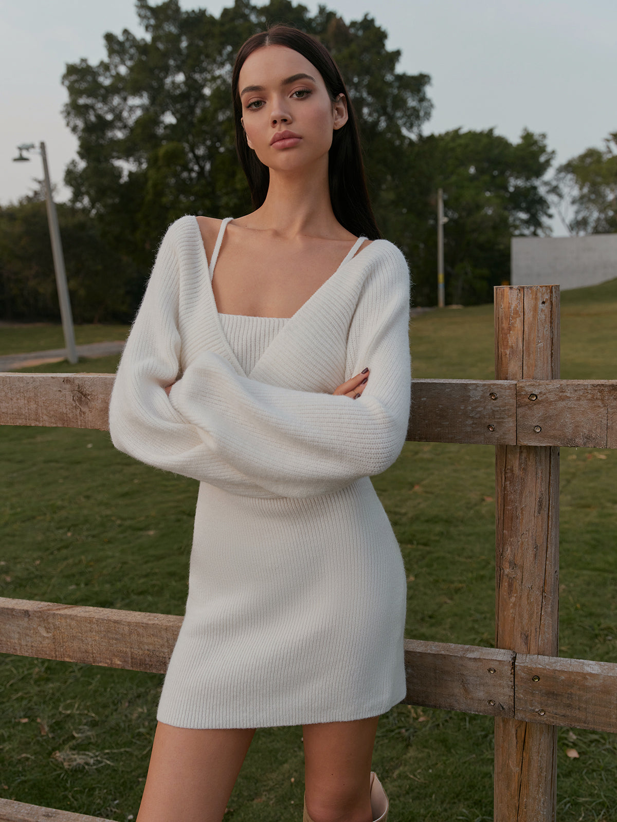 Şık 2'si 1 Arada Elbise Kazak, Şık Makarna Kolları ile