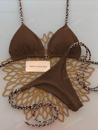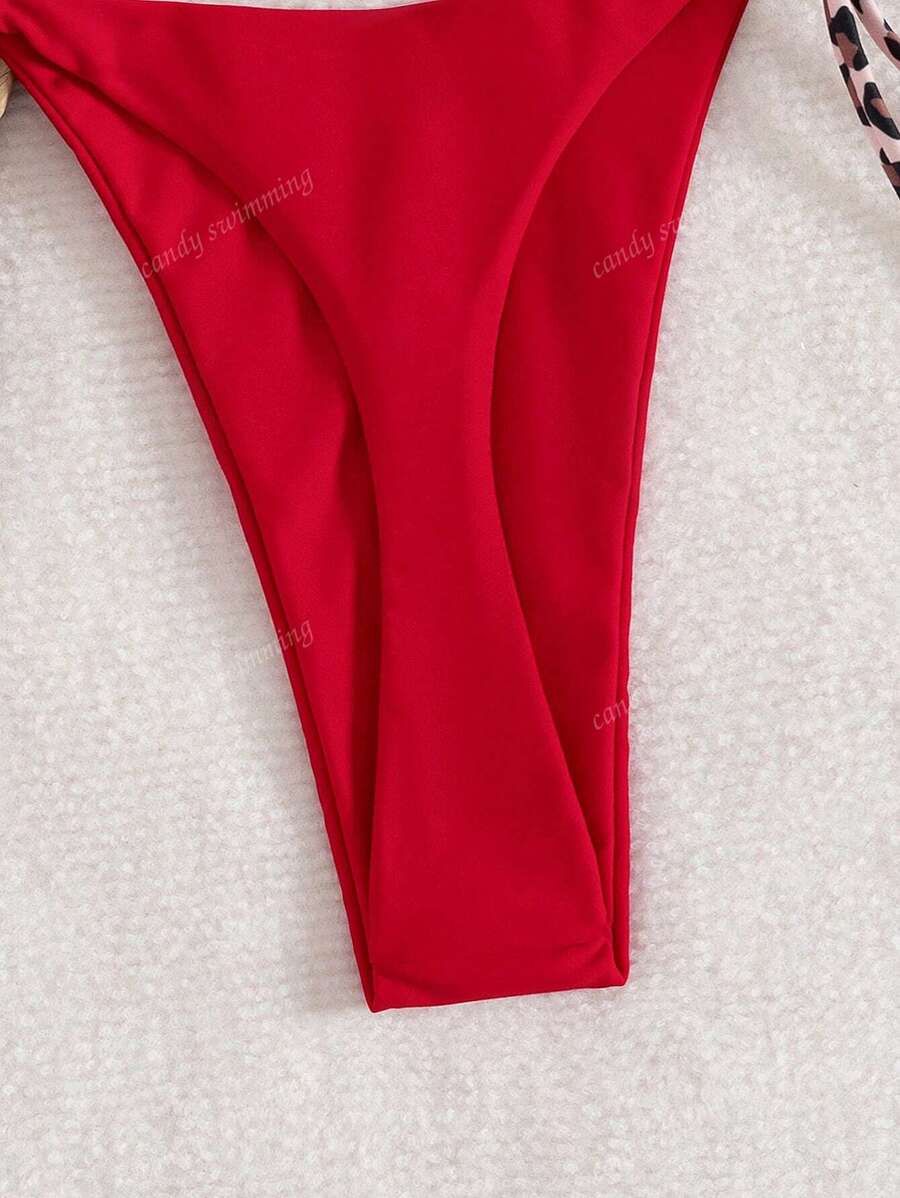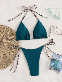 Leopar Desenli Boyundan Bağlamalı Bikini Takımı