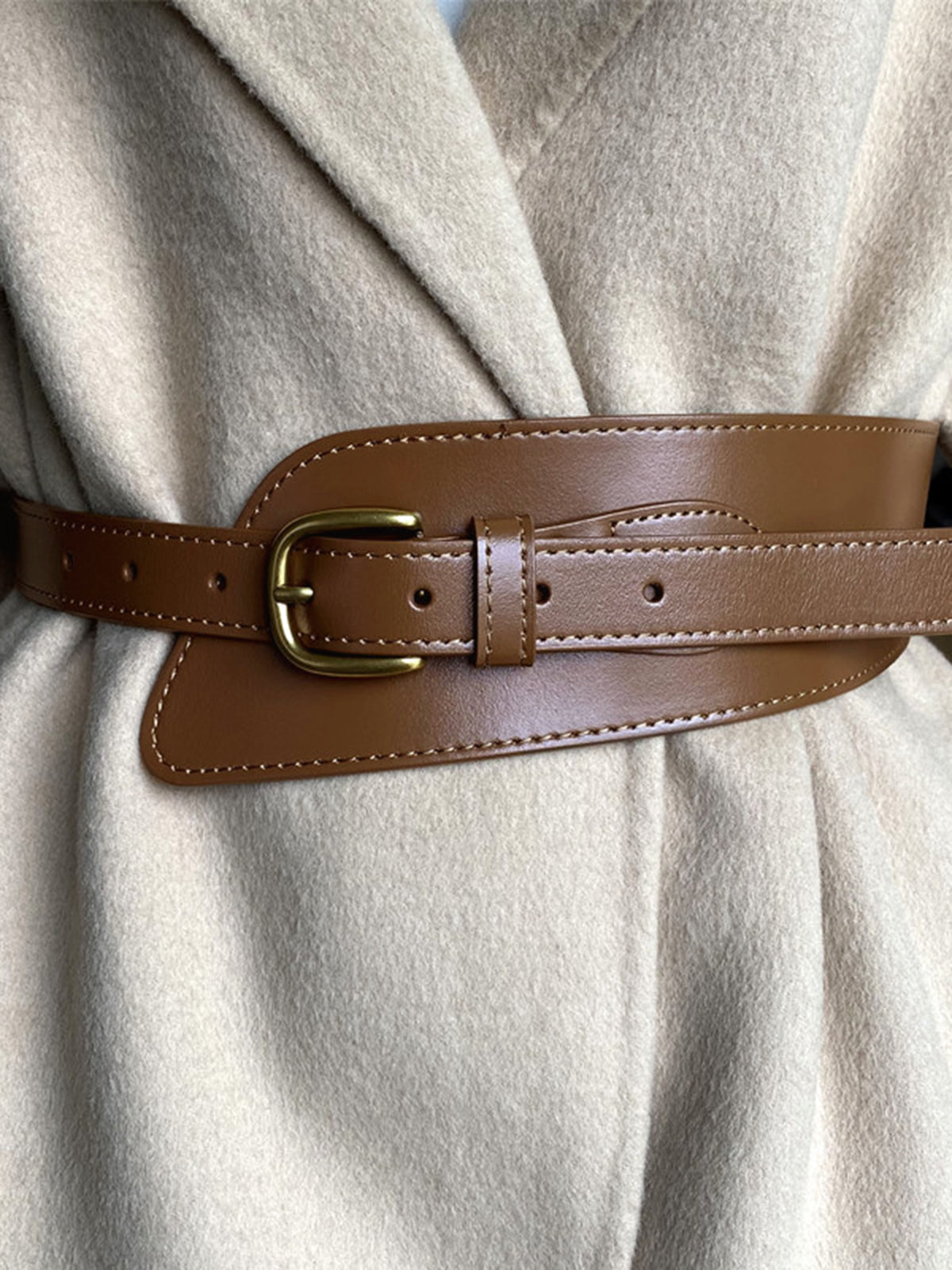 Asimetrik Tokalı Geniş Deri Kemeri