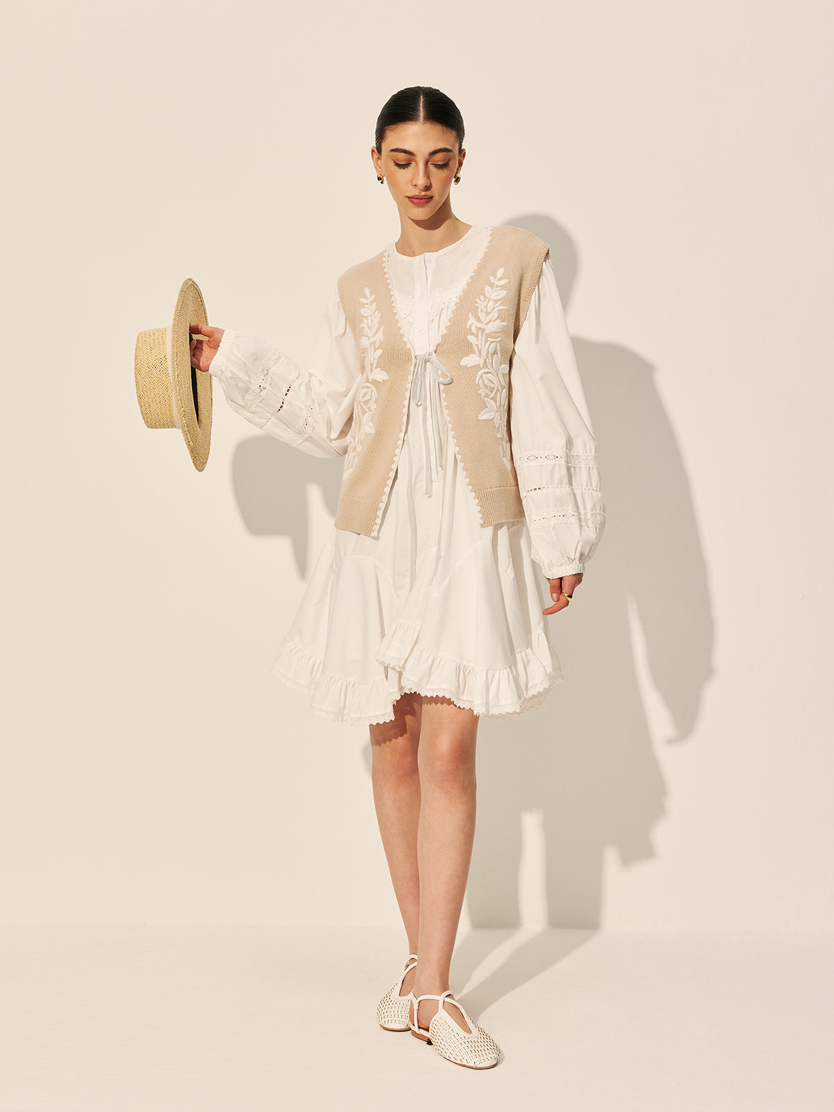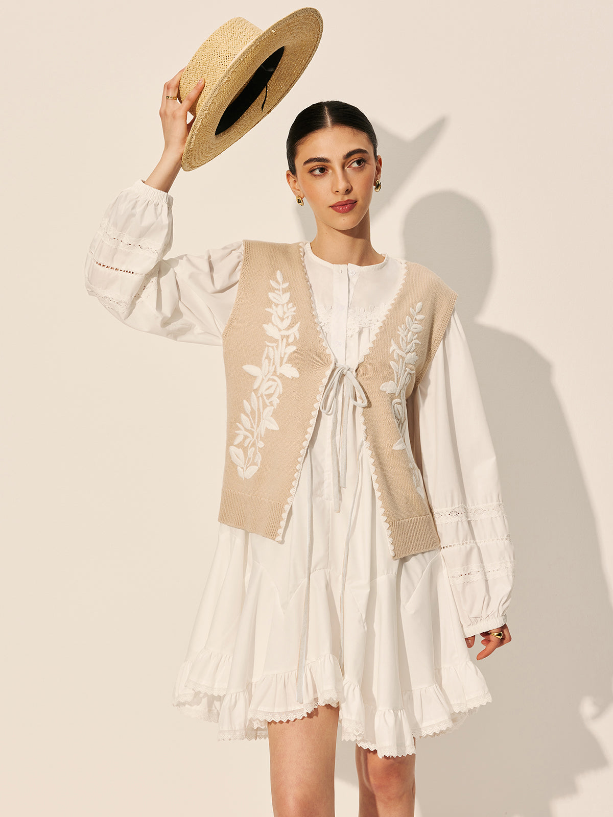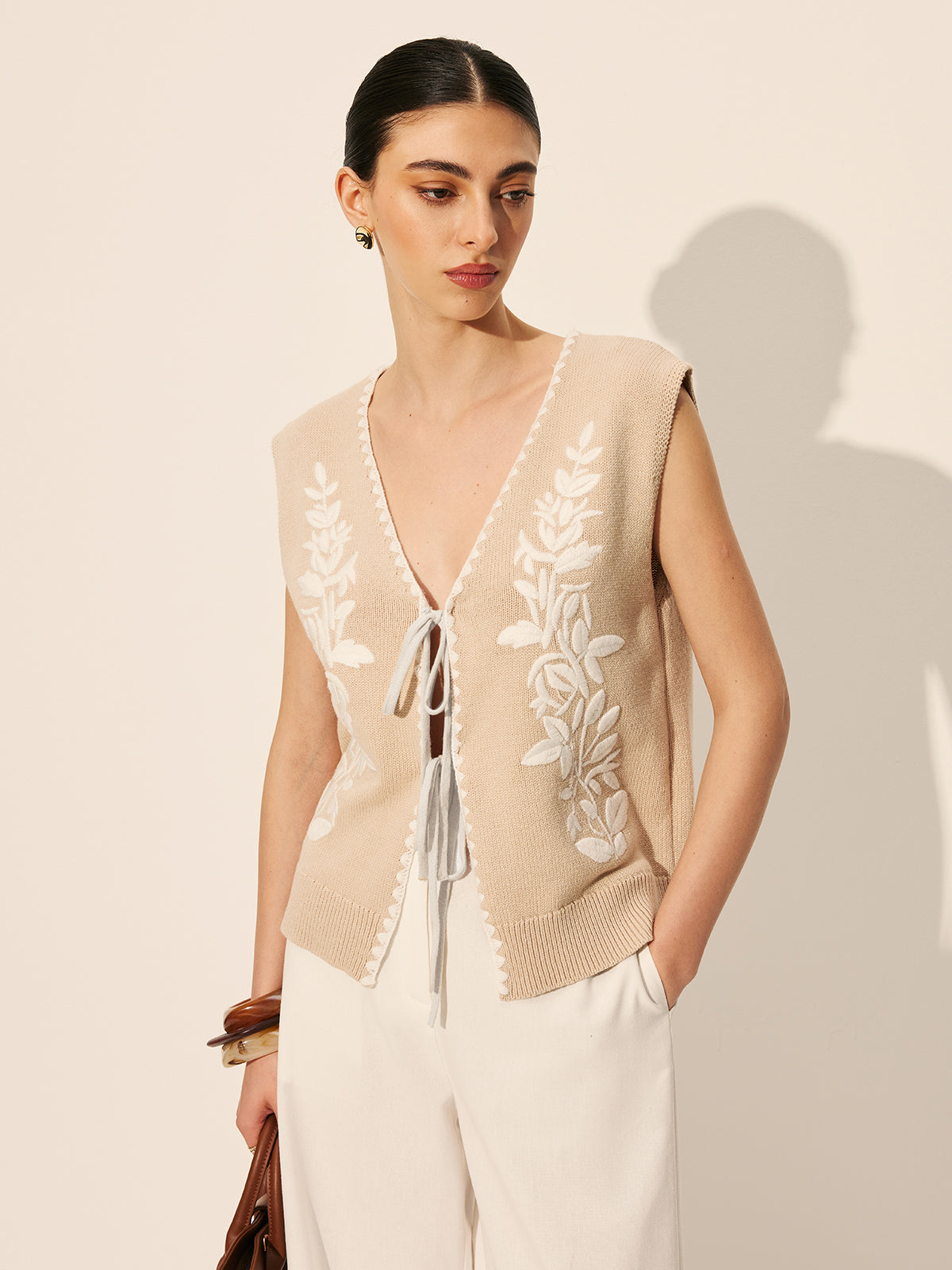 Şık Çiçek Desenli Nakışlı Fiyonk Kazak Yeleği