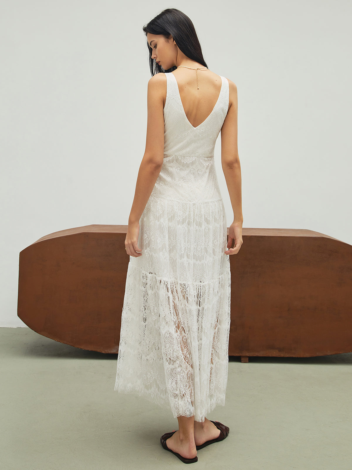 Dantel Çift Kat Uzun Elbise