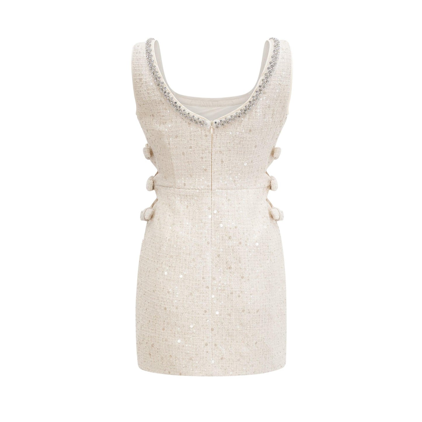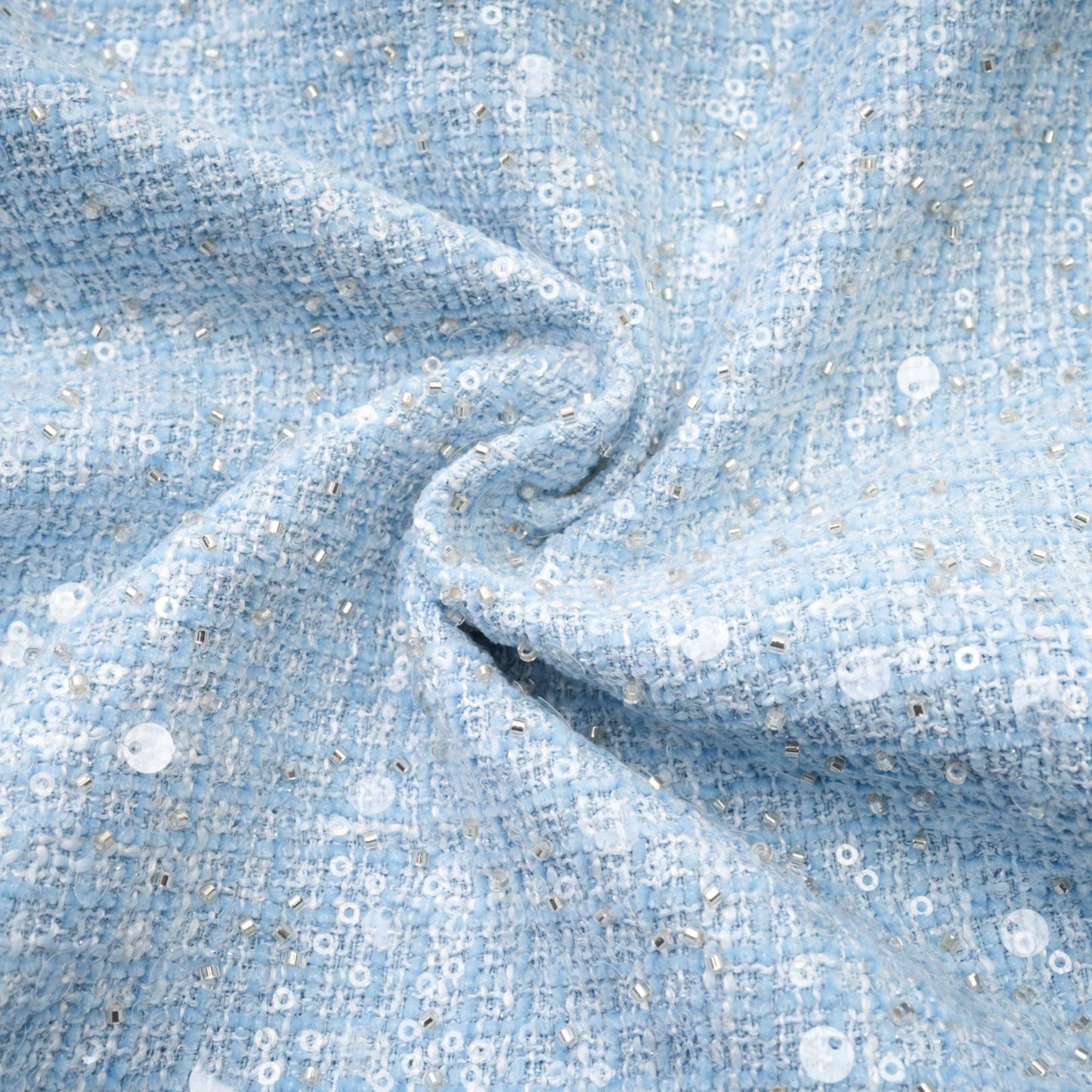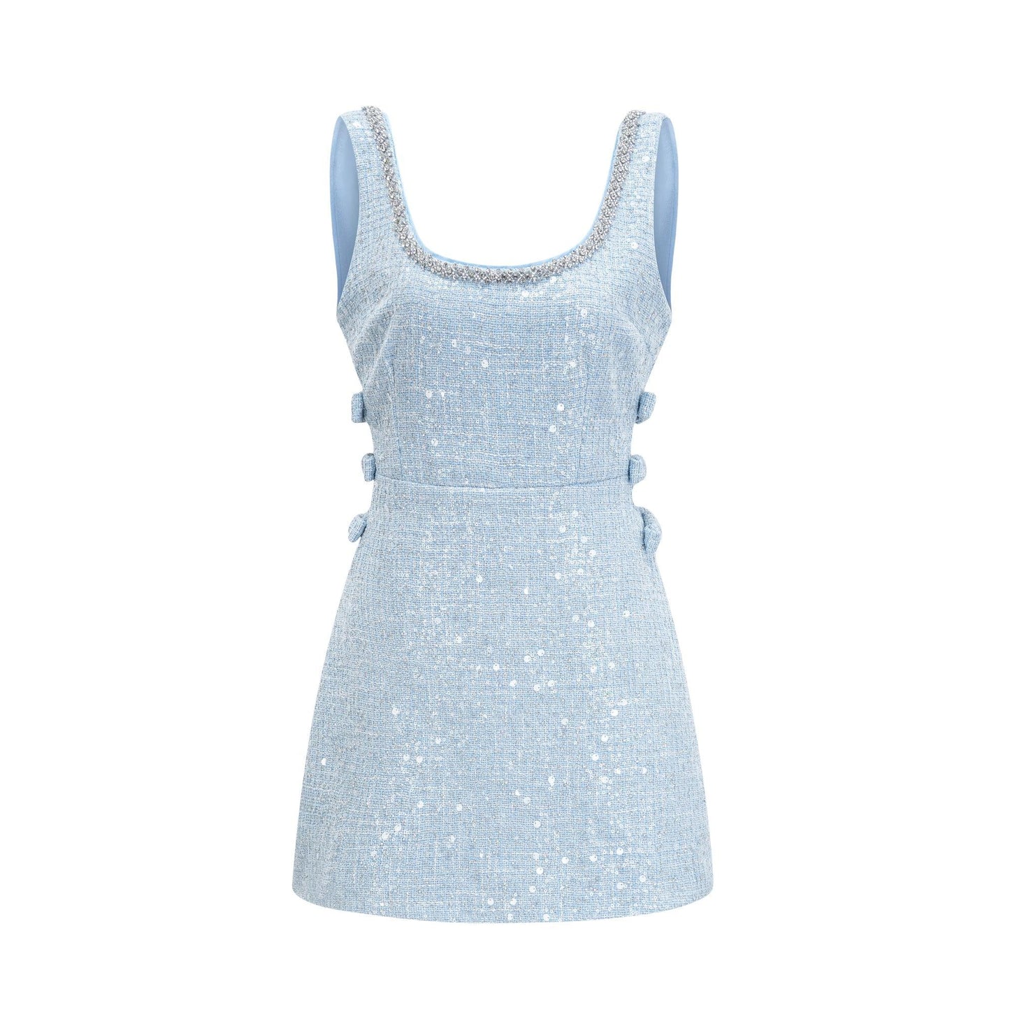 Şıklığı ve zarafeti buluşturan "Manon Charm" tweed mini elbise, açık mavi rengi ve ışıltılı detaylarıyla dikkat çeker. Yaka kısmındaki taş işlemeleri ve yan bağcık detayları, tasarıma zarif bir dokunuş katar. Özel günlerde ve davetlerde göz kamaştırıcı bir görünüm için mükemmel bir seçim. Tarzınıza lüks bir dokunuş katın!
