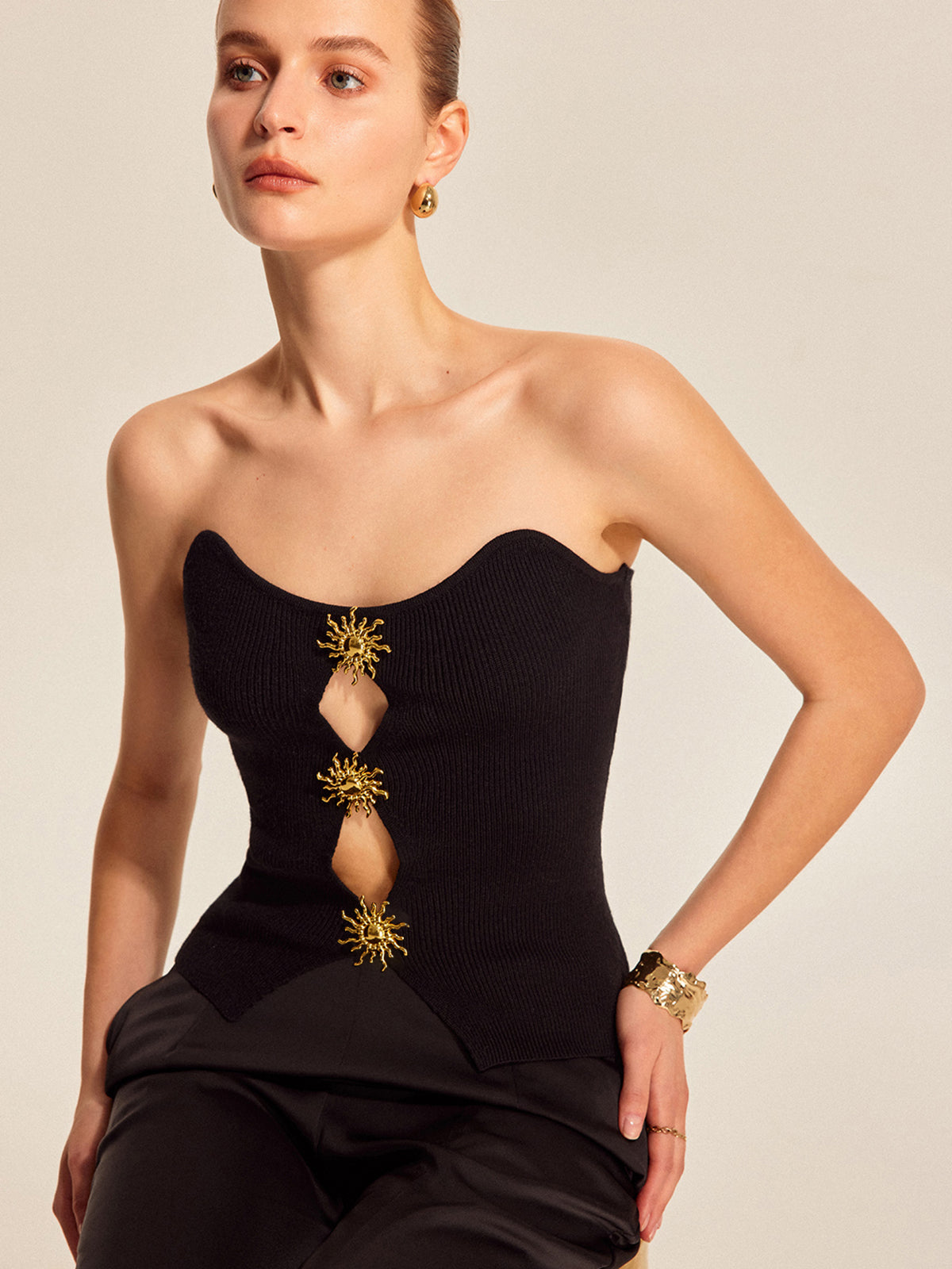 Şık Tasarım: Trendy metal kesim detayı ile bu üst, düğünler, partiler ve daha fazlası için mükemmeldir; herhangi bir kıyafete zarafet katmaktadır.
