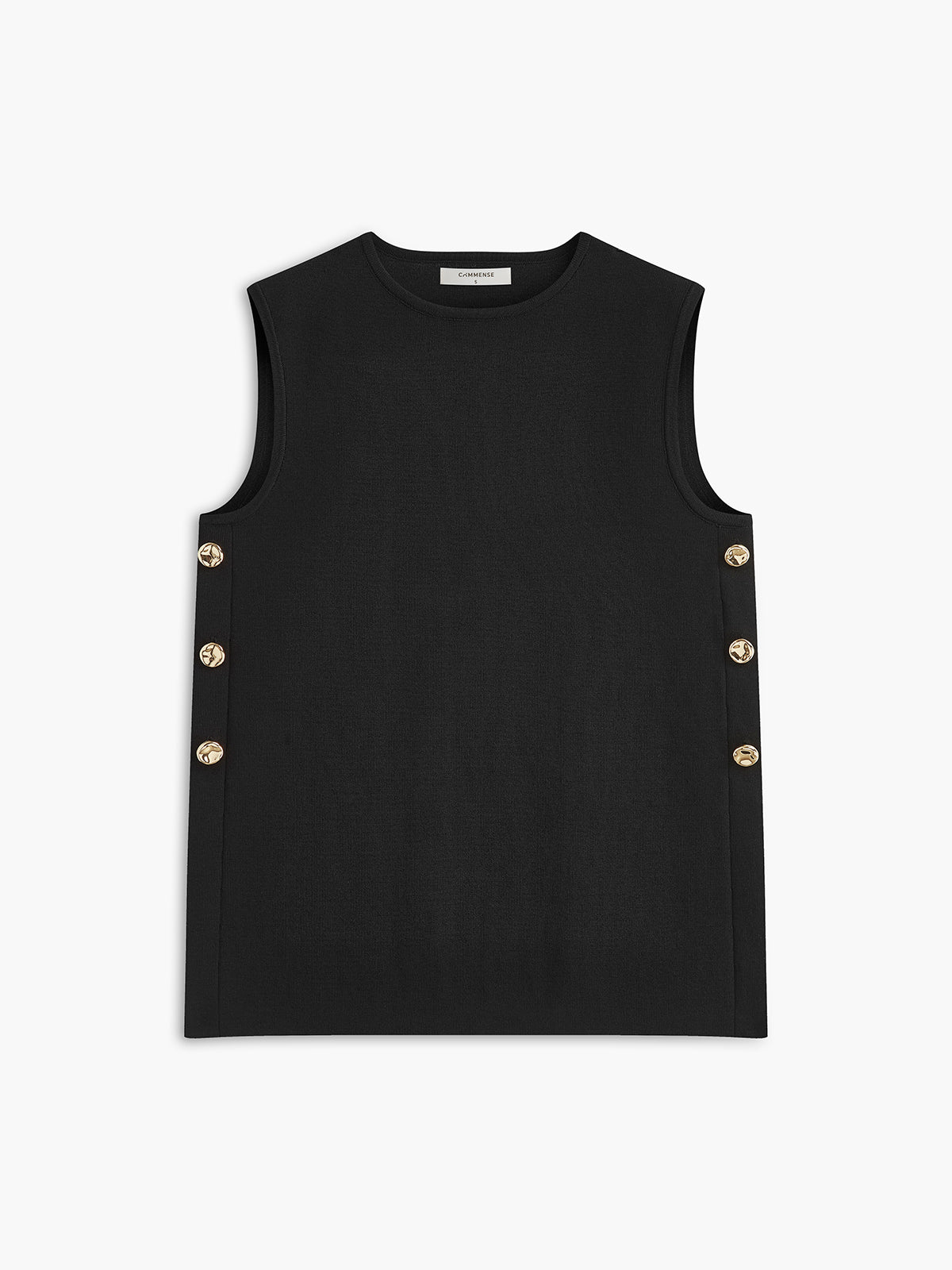 Şık Metal Aksesuarlı Kolsuz Kazak Yeleği